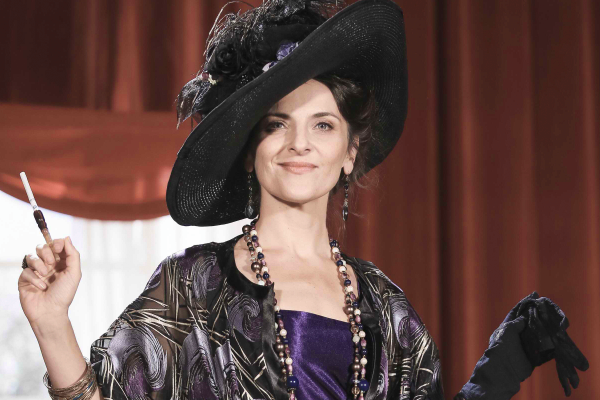 Mi personaje se llama Asunción Mackenna, es la hermana menor de este gran patriarca Eleodoro Mackenna (Francisco Melo) y es una mujer que se reveló, ya se va a saber porque, contra todas las convenciones. Se fue de viaje, no se casó, ha vivido la vida libremente y en sus viajes por Estados Unidos se empezó a meter en este rollo del espiritismo y la ouija. Todo por una sensibilidad muy particular que tenía. Ella empezó a tener visiones y finalmente canalizó eso a través del espiritismo. Su historia arranca cuando regresa de un viaje y vuelve a entrar a esta familia, que es una familia muy conservadora encabezada por este hombre tremendo. Ella también llega a aleonar a las mujeres, a poder, no sé, besarse, vivir. Porque el no haberse casado le genera una libertad de no venderle cuentos a nadie y desde ese lugar mira a todas las mujeres de su familia, así que les permite vivir, sentir, decir y las aleona en aquello jajaja.
