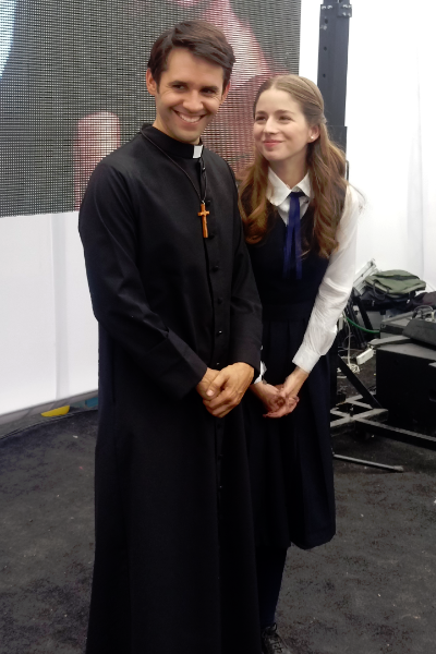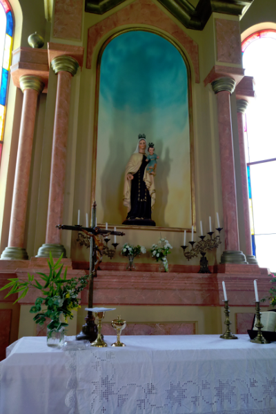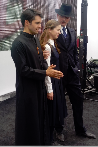 En este fundo de dos hectáreas, en el que más de ciento cincuenta personas construyeron cuatro mil quinientos metros de escenografía, parte del equipo se encontraba grabando un escena que incluía la participación de decenas de extras y las actrices Mariana Di Girólamo, Fernanda Ramírez y Soledad Cruz, las que interpretan a las colegialas María Elsa Quiroga, Augusta Montero y Mercedes Möller respectivamente. Minutos después también se sumó Mario Horton como el padre Reynaldo Suárez y Ximena Rivas como Guillermina Márquez, directora y profesora del colegio de señoritas del pueblo.
