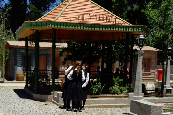 Este martes Mega abrió las puertas de la principal locación de su nueva teleserie nocturna, la que presentó en sociedad a auspiciadores y medios de comunicación. Una imponente iglesia, y las fachadas de los Almacenes Quiroga, la hostería Moller, un colegio de niñas, un correo, un mercado de alimentos y diversos negocios son parte de la infraestructura que la señal privada construyó en Pirque para ambientar la historia.